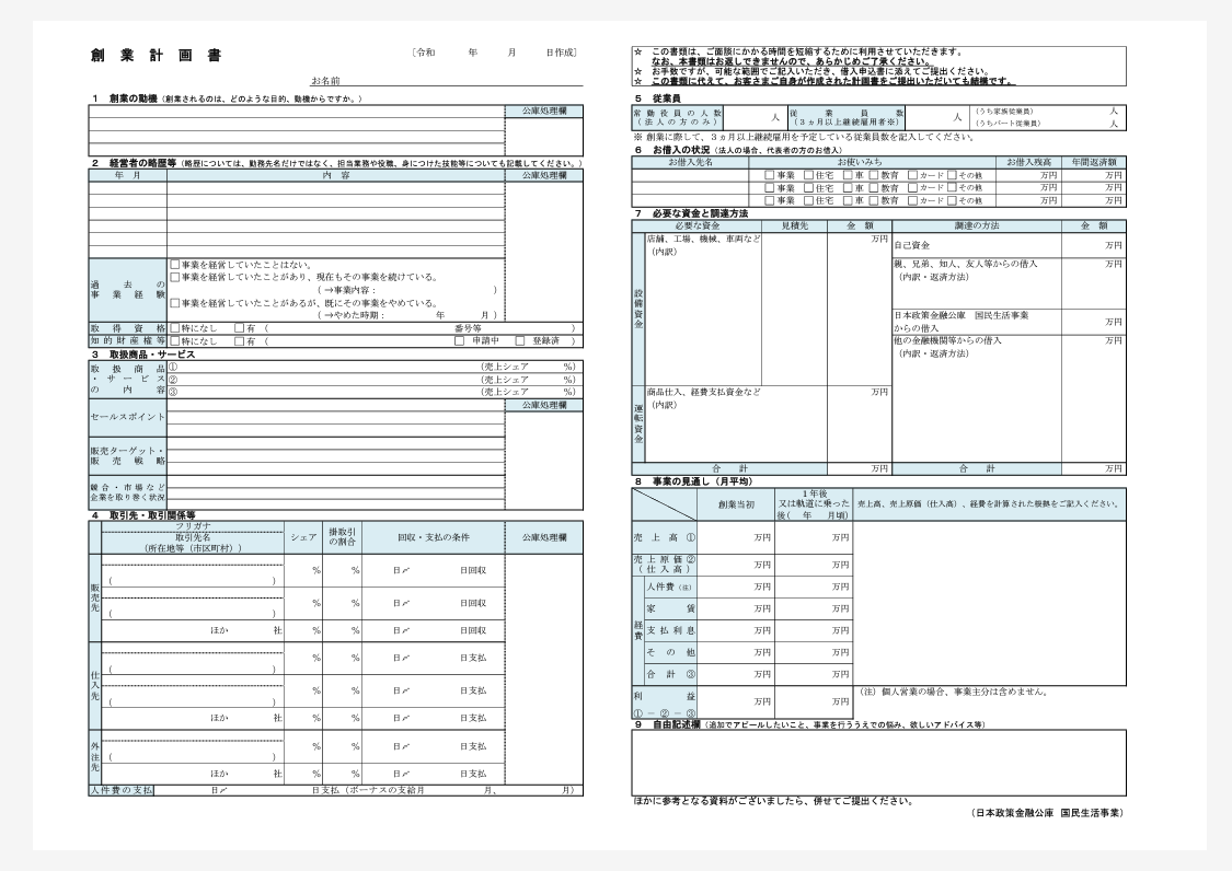 売上の根拠がはっきりしなかったり曖昧だと、事業計画が不十分と判断される傾向があるのでしっかり記入しましょう。
